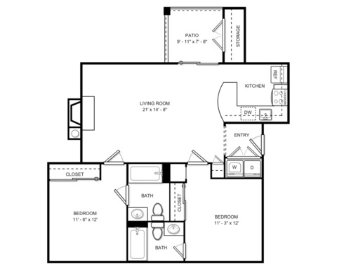 2 Bedrooms,