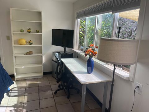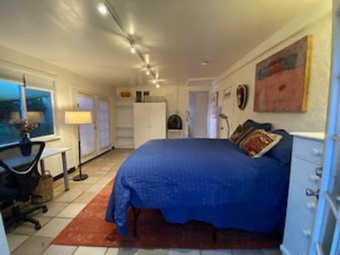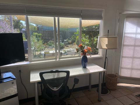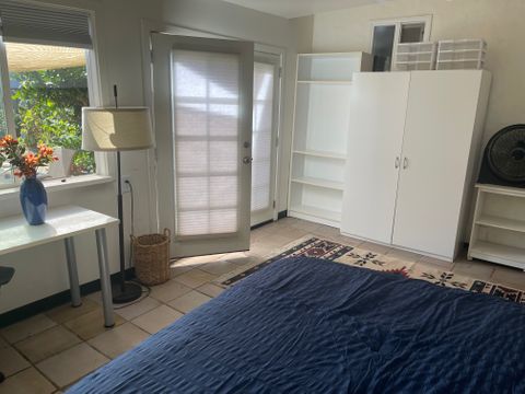 SPACIOUS STUDIO/INCLUDES UTILITIES/HALF BATH LIVE OAK area near 15th and Capitola. Private entrance. Track lighting. Contemporary furnishings. Desk has view of sunny garden. Flat screen TV plus Netflix. Tile floors/rugs. Relaxing patio area. Monarch butterfly haven. Chicken coop with fresh eggs! Storage space. Shared kitchen and bathroom/shower. Microwave Mini fridge. Must love dogs—one Weimeraner in house. Privacy. Quiet quarters. Roomates in house congenial, easygoing. Five minutes from Twin Lakes and Twin Lakes Beach. Nice neighborhood. Easy access to freeway. Near Capitola Mall/Trader Joes. PLEASE NOTE: EMAIL FIRST. WE ARE HAVING ISSUES WITH OUR SPAM DELETER.