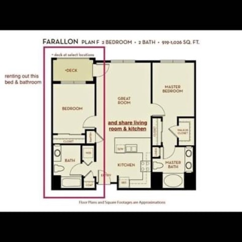 Bedroom 1 . Shared . . Private . $1,884