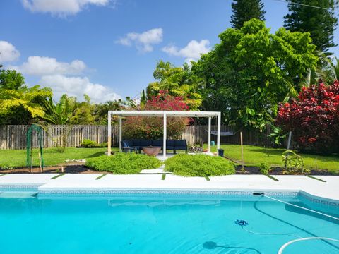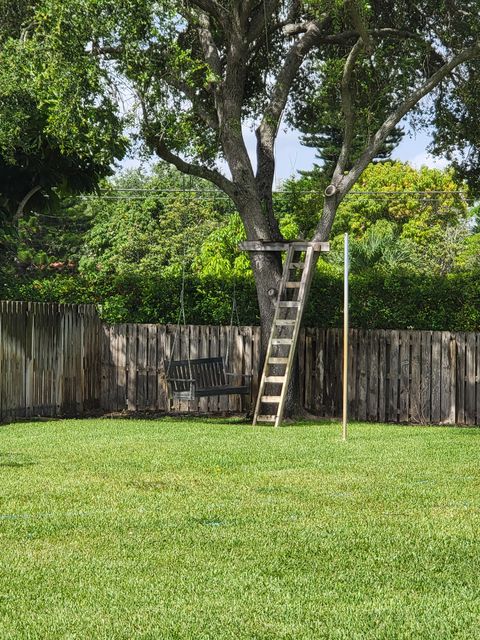 Single family home in an older neighborhood on a quiet cul de sac with a fully fenced private backyard. 4 bedroom, 2 bath, FR, LR, washer/dryer, iron and ironing board, large patio area. Heated/cooled salt system pool with a zipline running over it. Ping pong table, Tetherball, 2 firepits, 3 outdoor seating areas, hammock and bench tree swing. WiFi, water and electric included. No parties allowed. Minutes from the downtown area and can easily walk to any events happening there. Centrally located so you can spend the day in West Palm Beach, Boca Raton, Delray Beach, Deerfield Beach, Ft. Lauderdale or Miami/South Beach. You could even take a daytrip to Naples as it's only 90 minutes away. There are plenty of parks close by and more restaurants than needed. There will be one space available in the 2 car garage. If you like nature and wildlife there are plenty of birds, butterflies, bees and squirrels out back to enjoy. I have fruits, vegetables and herbs growing throughout the yard and you are welcome to help yourself to anything that is ready for harvest. While I don't have a gym there is a treadmill there along with assorted exercise equipment such as weights, yoga mats, bosu ball, bands, feet up trainer and an outdoor bike. Garbage comes twice a week, recycle once a week. Lawn service comes twice a month and pool service is weekly.