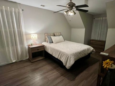 Entire home. Two levels, with fenced backyard and screened in back porch. First level: living room, dining area, kitchen, full size washer and dryer, full bathroom, queen bedroom, access to back porch. Second level: one king bedroom, one queen bedroom, one full bathroom. Price includes utilities, and lawn care every other week. Private driveway parking for 2-3 cars. Quiet, dead end cul-de-sac road, in family friendly neighborhood. Located halfway between downtown Savannah and tybee island beach.