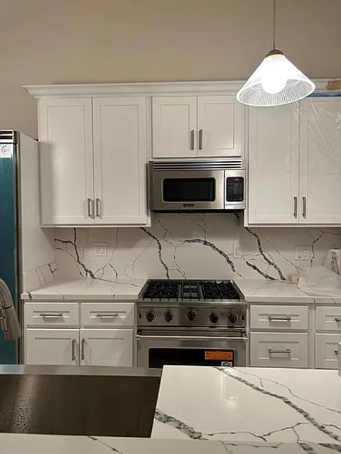 This completely remodeled 3 bedroom, 3 bathroom single story home with an open floor plan and plenty of natural light is now ready for occupancy! It has a living room with a bar and fireplace that leads to the good-sized backyard. It has all new appliances, kitchen cabinets, bathrooms with jacuzzi bathtubs. The master bedroom and second bedroom have their own private patios, and the 2 car garage has electric charger for EVs. There is also heating, air conditioning, a community pool, tennis courts and amenities. There is a laundry room with a sink and both a washer & dryer. Please call for more information.