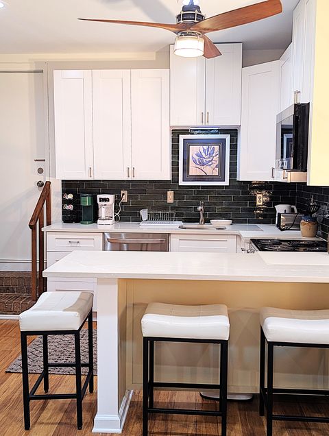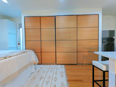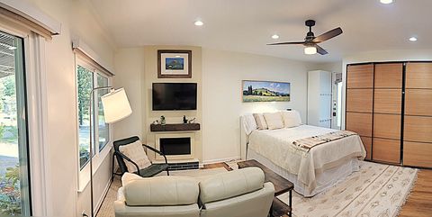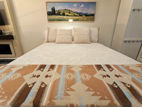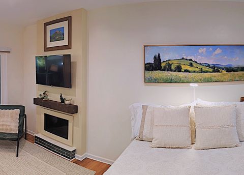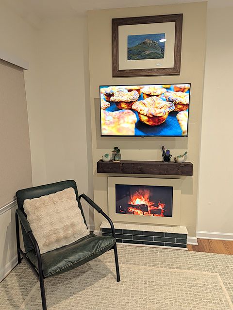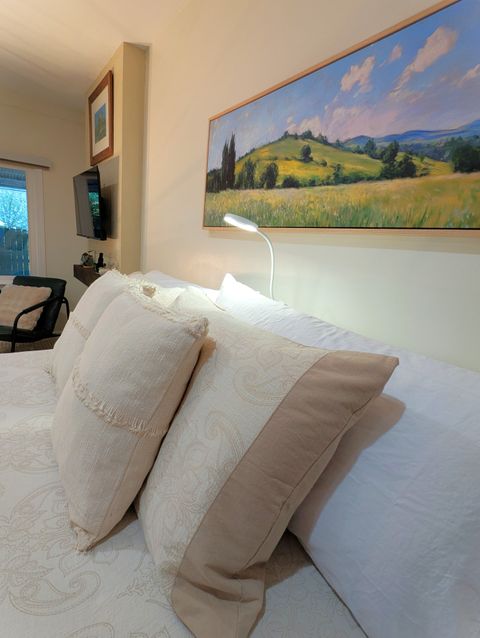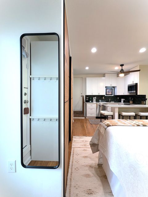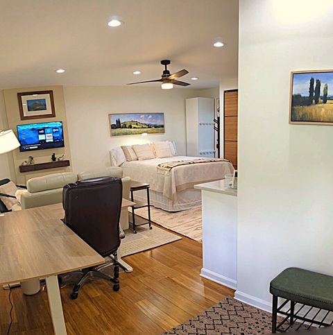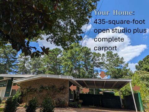 The apartment is designed for one tenant. One cat is welcome. Located in a safe family neighborhood, this new, light-filled open studio has been constructed in summer 2025 and is a completely independent unit from the larger home, where the landlords reside. It features a full-sized kitchen with deep green subway tile backsplash and cream-colored quartzite counter and peninsula. The kitchen is stocked with cooking necessities and all key appliances, including dishwasher and washer/dryer. There is a spacious walk-in shower with bench and decorative tile and very ample storage (three closets with bamboo sliding doors, one tall wardrobe with 10 shelves/drawers, and kitchen cabinetry). The bed's queen-sized medium-firm mattress is topped with two inches of memory foam. All linens are provided and are 100% cotton. The headboard features two USB ports and two under-shelf lights. There is a new 42-inch Roku smart television and a digital fireplace. Both can be viewed easily from the kitchen as well as from the reclining leather sofa and L-shaped adjustable-height desk. The sofa sidetable can convert into a dinner tray or work table, and the office chair provides adjustable lumbar support. In the carport, a round table with two chairs offers a modest space for a tenant who would like to spend time outdoors on the property on fine days. The entire carport, with bright exterior lighting, is set aside for the use of the tenant; the owners park perpendicular to the drive. Safety features include Schlage lock, Simplisafe security panel, deadbolts, traditional locks, and fire and CO2 alarms. The full kitchen includes a 4-burner electric stove & oven, microwave, refrigerator, washer/dryer, dishwasher, and quartzite countertops and peninsula. 42-inch Smart TV & lifelike video of crackling fireplace are both accessible via remote. Med-firm queen mattress topped with memory foam. Bathroom has walk-in shower with artistic tile and seat. Very abundant storage throughout. Private table & chairs outdoors with mini herb garden. Renter has complete carport. Walk easily from this safe neighborhood to downtown Kennesaw and several parks. On our cul-de sac, people walk dogs, children play in yards, and families enjoy sunset strolls. Less than 4 miles from Kennesaw Mountain National Park, with its extensive trails and stunning views of Atlanta & surrounding areas. Whole Foods, Aldi, Publix, Target, Wal-Mart, AMC, beaches and campgrounds at Lake Alatoona, & a major regional shopping area are minutes away. ATL & its world-class amenities <30 miles south on I-75.