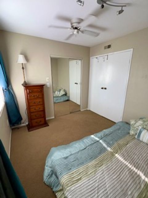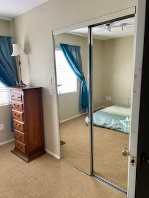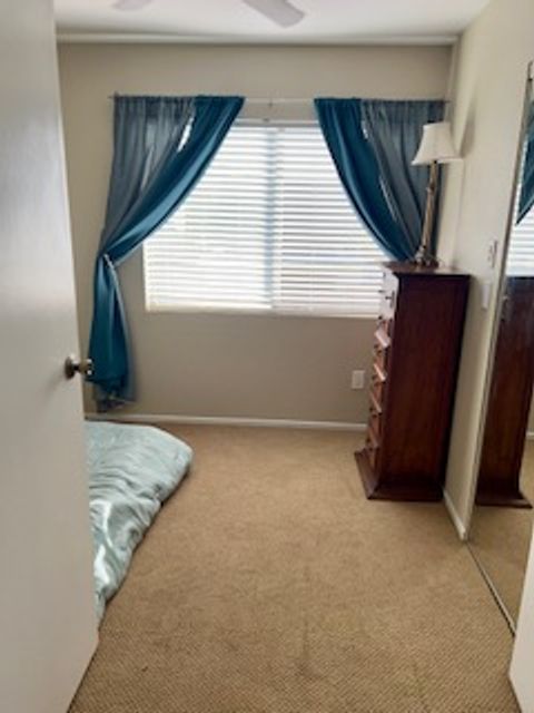 A 100 sq ft unfurnished bedroom (optionally furnished with a queen bed) is available for rent, featuring portable air conditioning and a separate bathroom. Parking is provided. The townhouse includes a kitchen, dining area, living room, washer and dryer, and a wrap-around patio. Located in the Villa Portofino Community, this property offers a safe environment with amenities such as a large park, basketball, pickleball, and tennis courts, BBQ area, pool, and jacuzzi—all within walking distance. The location is convenient, with grocery and convenience stores nearby and easy access to the 15 and 52 freeways. The ideal tenant will be reliable, employed, or retired (proof of income and references required), clean, responsible, communicative, and punctual with rent payments. A genuine appreciation for dogs is essential. There is currently one small (24 lb.) male dog in the residence. Consideration may be given to an additional dog after a successful meet-and-greet to ensure compatibility. Any prospective pet must be spayed or neutered, have up-to-date vaccinations, and an additional $100 pet deposit applies. No exceptions. If you are seeking a dependable, laid-back roommate who enjoys cooking, maintains tidy communal spaces, and values harmonious cohabitation, this could be an excellent fit.