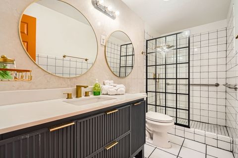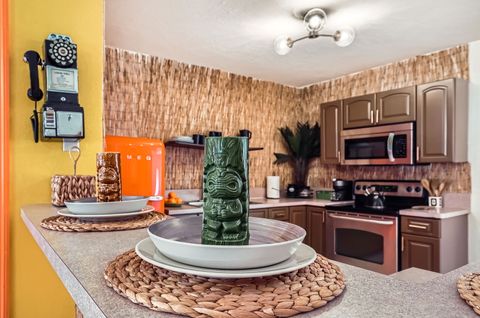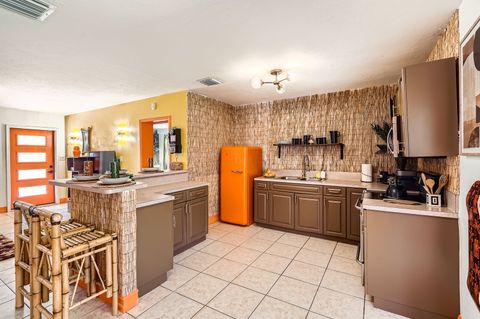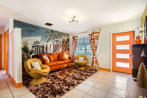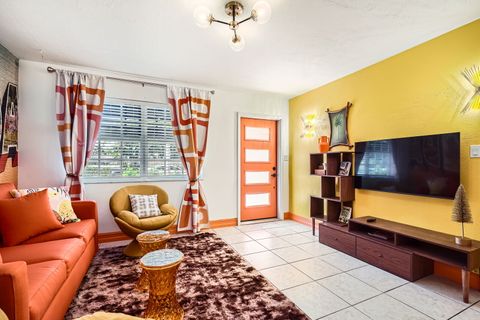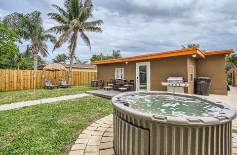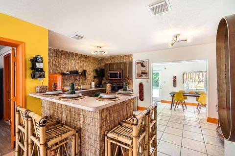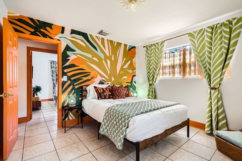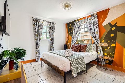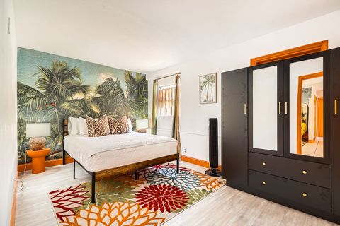 Soak in our private hot tub after a sun filled day! This vibrant 3-bedroom, 2-bath Tiki Retreat is a quick 5-10 min drive to our beautiful West Palm Beaches. Perfect for couples and families. - Spacious backyard - Fast WIFI & Smart TV - Full kitchen - Washer/dryer Book your coastal getaway today-paradise awaits!