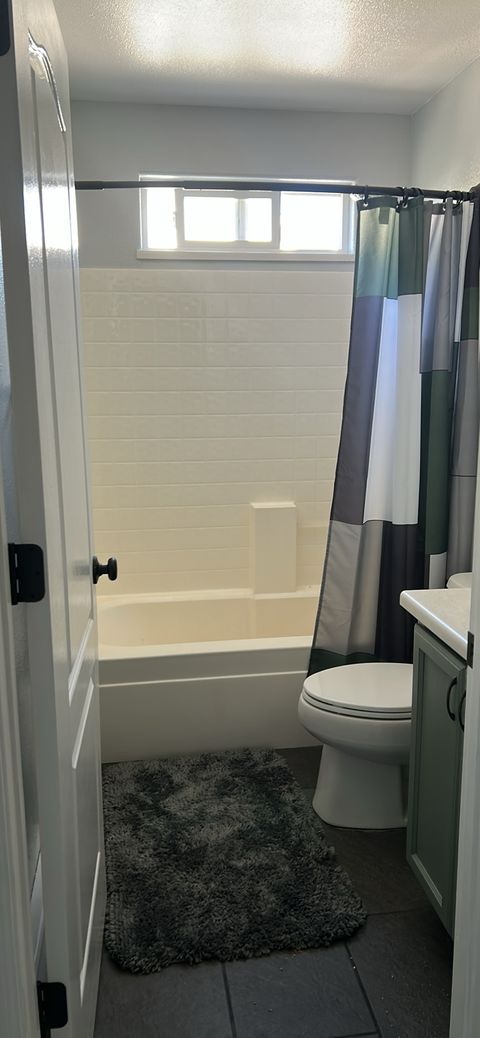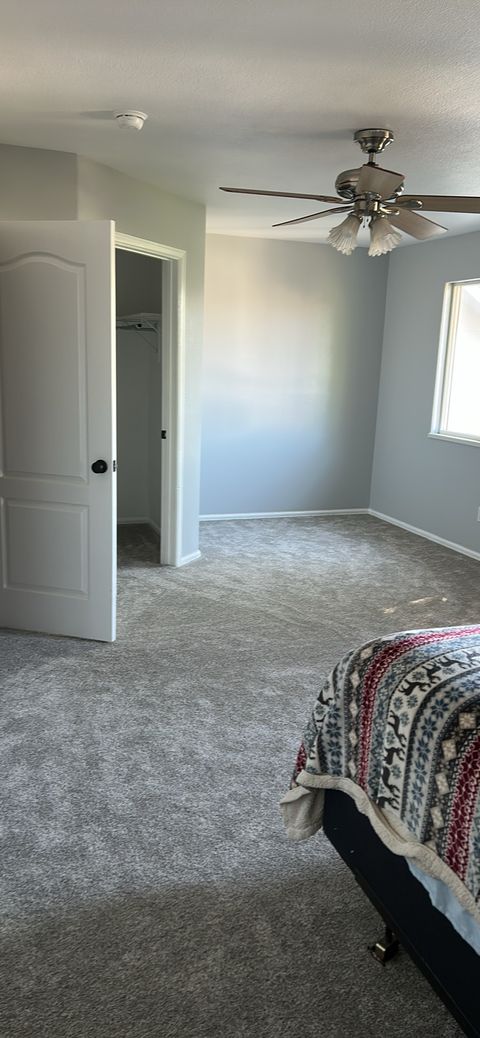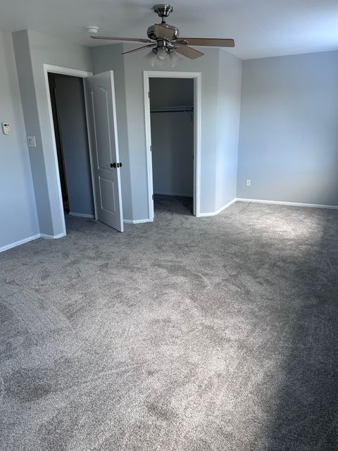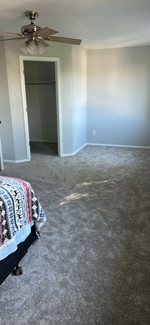 The rooms for rent are upstairs. The whole upstairs is brand new carpet and paint. There is 1 bathroom upstairs to share if both rooms are rented. The living room, kitchen and dining room are shared with the homeowner who lives in the master downstairs. There is one dog at the home who stays downstairs. Parking is on the dead end street which is quiet with little traffic. There is a fenced back yard. Rooms each have a bed currently and they can be fully furnished with a dresser and night stands if needed or bring your own. No smoking or drugs allowed! Period.