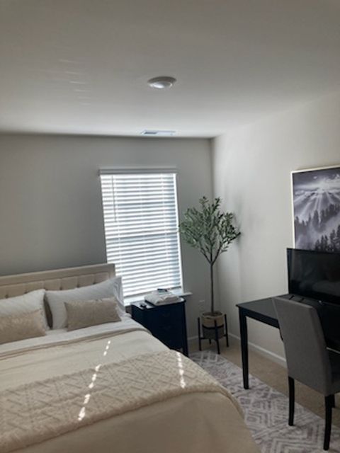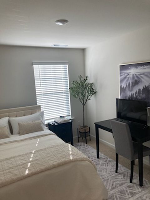Brand new cozy, clean, modern town home 10 min from downtown Fuquay. Brand new subdivision. Great amenities: private room with own desk and smart tv, wifi, personal room door code, washer and dryer, full kitchen, coffee maker, dual level heating and cooling system and more. Great community for walking, park, friendly.