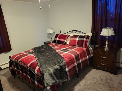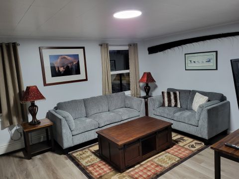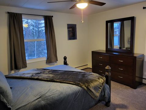 It is located 10 min from Fairbanks Memorial Hospital. It is centrally located for groceries, restaurants and gas stations. The apartment includes a heated garage, washer and dryer in the unit, electric fireplace, dishwasher, full linens, 2 queen size beds, blackout curtains and a 50 in Smart TV. It is one apartment in a complex of 5. It is quiet and respectful. It is in a secured building.No pets, no smoking, vaping, drugs, etc.. Clean, comfortable and Alaska decorated! It is down the hill from UAF and very close to a city transportation stop. For those tenants who will be staying less than 2 months, the security deposit will be $1000. Cozy and warm .