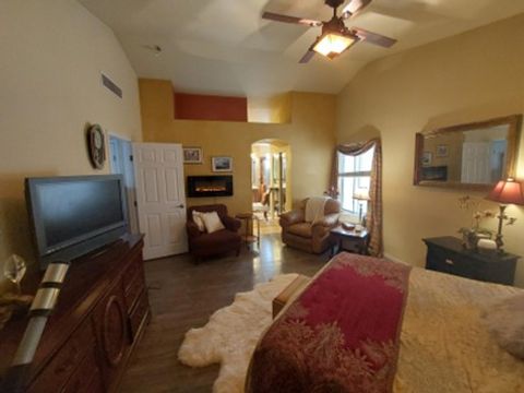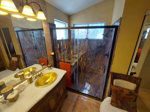 I call my home Casa Consuela Tranquil Garden and have created an environment that is eco-friendly and a space you go "AHHHH" in. My goal is to create a calm, inviting environment that is relaxing and comfortable. The Primary Bedroom is a spacious retreat with vaulted ceilings, Tuscan-style walls, and a stunning walk-in shower with hand-painted doors. European vanity with dual brass sinks adds elegance to your private sanctuary. This is a home filled with artistry and the tranquil garden is an extension of the home and is perfect for year-round enjoyment. The greenhouse she-shed is perfect for reading, working, or enjoying your favorite beverage. It is in a quiet area of Centennial Hills in NW Las Vegas. Less than 20 minutes from 8 hospitals and several physical therapy and other specialty clinics. It is nestled in with parks,, YMCA, library, shopping and restaurants. Outdoor adventures include Mt. Charleston skiing, mountain biking and hiking. Close to Red Rock climbing, and Floyd Lamb Tule Springs Park with ponds, farmers market and scenic trails.