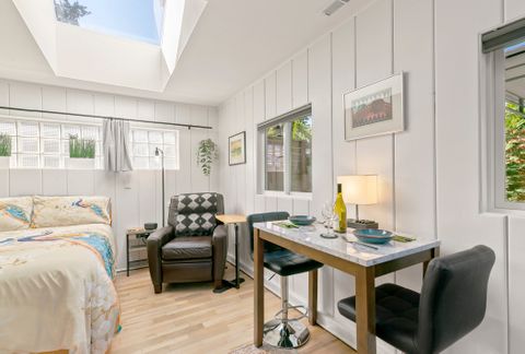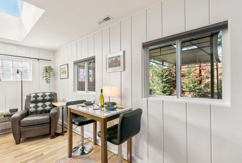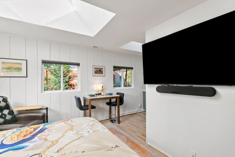 Experience luxury and tranquility in this modernized den, thoughtfully designed for comfort and convenience, featuring giant skylights, shiplap accents, and all-new luxury amenities to make your stay feel like home. Private Patio. Relax with a 65 HDTV, enjoy your own private entrance and private patio, and take advantage of shared laundry facilities and an outdoor fireplace, all nestled within lush gardens. Spa like bathroom w Bidet. Your own compost bin in the garden. Close to downtown and 6 Hospitals: St. Vincents/ OHSU/ VA/ Doernbecher Children's/ Shriners Childrens / Good Samaritan This beautifully appointed studio features Private Patio New custom bathroom Bidet Modern chefs kitchen Microwave Instant Pot induction cooktop Ninja blender Ninja air fryer / toaster. New queen adjustable bed Leather recliner HDTV High-speed internet. Dining table for two Adjustable stools 2 skylights and filled with natural light. Nestled near Gabriel Park, the Southwest Community Center, and the charming shops and breweries of Multnomah Village, youll feel the best of both worlds close to downtown Portland while enjoying a country-like setting. The property boasts: fruit trees gardens outdoor fireplace stunning sunsets of the coastal range. Conveniently located just 3 miles from hospitals and on the bus line, our studio is pet-friendly and ideal for long stays of 2 months or more. Enjoy free on-street parking in this quiet neighborhood with low crime rates.