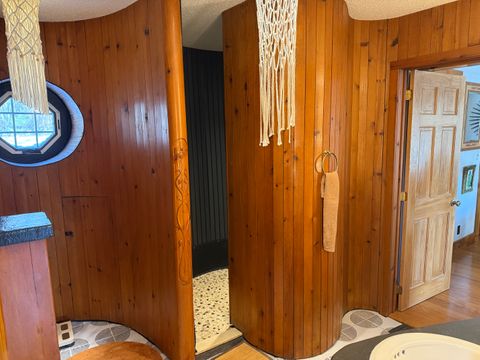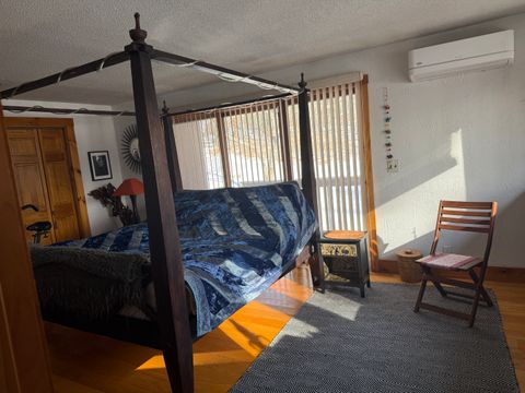 I'm looking for a friendly person who will share this beautiful place with me. You will have a furnished big bedroom with a TV, extremely cozy, with an excellent view. We can share the living room, kitchen, and a spacious 2-acre garden. You will have access to a private bathroom with a shower, and there is also a bathroom with a bathtub upstairs. In the spring, I’ll have an outdoor jacuzzi for relaxation. The house is a unique A-frame style and features three porches. You will have your own porch. There are plenty of hospitals nearby, and free parking is available.