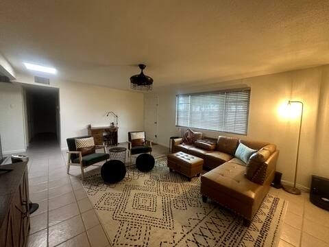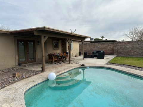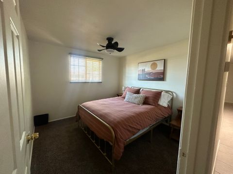 Calm & Serene Home for Traveling Professionals | Central Yuma, AZ This recently remodeled three-bedroom, two-bath home offers a quiet, welcoming environment ideal for traveling medical and working professionals seeking rest and relaxation during extended assignments. The primary bedroom is occupied by a full-time resident who maintains a clean, respectful household, along with a friendly, well-behaved dog named Toffee. Private Queen bedroom furnished for comfort and longer stays *Shares a spacious hallway bathroom with one other professional guest Home Features Shared spaces are thoughtfully maintained to support decompressing after long shifts and include: * Comfortable mattresses, fans, and blackout blinds * Fully equipped kitchen with cookware, dishes, and pantry space * All linens, towels, cleaning supplies, and household essentials provided * Laundry access included Each guest room includes: * Closet with hangers * Cabinet or chest of drawers * Laundry basket and shoe organizer * Under-bed storage space Additional storage is available in the hallway closet, garage, utility room, and outside refrigerator, as needed. Outdoor & Parking * Driveway parking for up to three vehicles, plus street parking if needed * Back patio seating area * Small charcoal/electric grill * Pool access for relaxation on days off Location Centrally located in Yuma—just minutes from (2-4 miles): * Local hospitals and medical facilities * Downtown Yuma * Restaurants, shopping, and the airport * River, hiking, camping, and exploring, just a few miles more This home is intentionally designed to be calm, clean, and comfortable, making it an excellent fit for nurses, therapists, technicians, and other traveling professionals seeking a soothing place to land while working in the Yuma area.