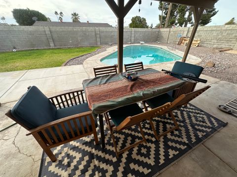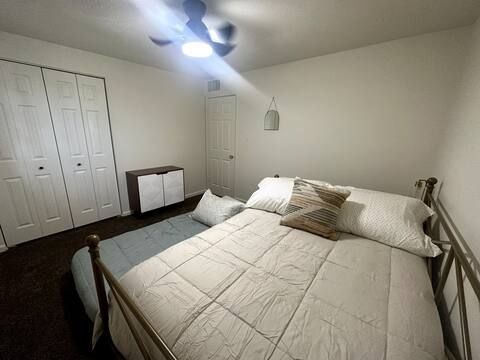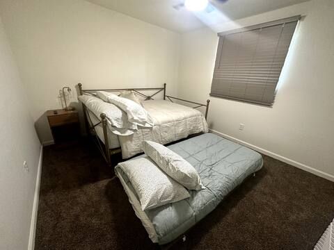 Calm & Serene Home for Traveling Professionals | Central Yuma, AZ This recently remodeled three-bedroom, two-bath home offers a quiet, welcoming environment ideal for traveling medical and working professionals seeking rest and relaxation during extended assignments. The primary bedroom is occupied by a full-time resident who maintains a clean, respectful household, along with a friendly, well-behaved dog named Toffee. Private Full bed with twin trundle furnished for flexibility *Shares a spacious hallway bathroom with one other professional guest Home Features Shared spaces are thoughtfully maintained to support decompressing after long shifts and include: * Comfortable mattresses, fans, and blackout blinds * Fully equipped kitchen with cookware, dishes, and pantry space * All linens, towels, cleaning supplies, and household essentials provided * Laundry access included Each guest room includes: * Closet with hangers * Cabinet or chest of drawers * Laundry basket and shoe organizer * Under-bed storage space Additional storage is available in the hallway closet, garage, utility room, and outside refrigerator, as needed. Outdoor & Parking * Driveway parking for up to three vehicles, plus street parking if needed * Back patio seating area * Small charcoal/electric grill * Pool access for staying cool on hot days off Location Centrally located in Yuma—just minutes from (2-4 miles): * Local hospitals and medical facilities * Downtown Yuma * Restaurants, shopping, and the airport * River, hiking, camping, and exploring, just a few miles more This home is intentionally designed to be calm, clean, and comfortable, making it an excellent fit for nurses, therapists, technicians, and other traveling professionals seeking a soothing place to land while working in the Yuma area.