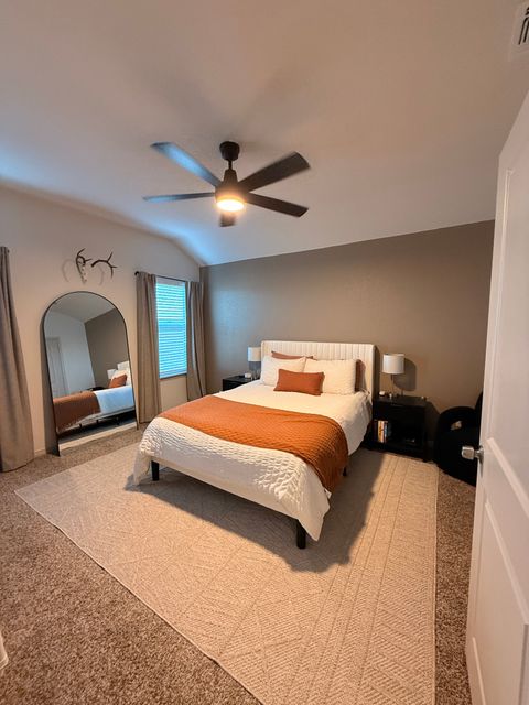 Modern, fully-furnished unit in a safe, family-friendly neighborhood. The entire home consists of 3b/2.5b. There is a small private backyard, laundry in-unit, bedroom ceiling fans, and Smart TVs in all rooms. Located near Target, HEB, Ulta Beauty, Best Buy, Lowes, Marshalls, Hobby Lobby, and more. There are a variety of restaurants in the area including Stonewerks Bar & Grill, Parrys Pizzeria & Taphouse, Bubbas 33, Pluckers Wing Bar, and more. Entertainment options include Santiko's movie theater, bowling, Government Canyon Natural Park, SeaWorld, and more.