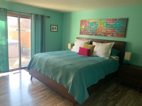 Cute private home in a quiet cul-de-sac at the base of Boise's foothills. Fully fenced back yard with patio and hot tub. Laundry and on-site parking. All utilities and internet included. Three bedrooms (one king, one queen, one full) and a bonus office or bedroom with a pull out couch. Two of the rooms have desks for workspaces.
