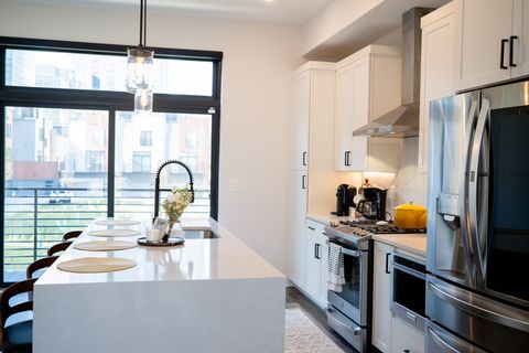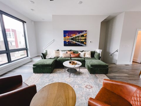 Fully furnished executive townhome available now for mid-term corporate housing in Downtown Cleveland. This 4-level 2BR / 2.5BA residence is designed for professional placements, including healthcare providers, corporate relocations, and extended assignments. The home features a dedicated private office, open-concept living and kitchen, and a top-floor bonus room with private balcony and skyline views. An attached 2-car garage with EV charger, in-unit laundry, and modern furnishings provide a turnkey experience for longer stays. All utilities, high-speed WiFi, and furnishings are included for predictable monthly costs. Convenient access to Cleveland Clinic, University Hospitals, MetroHealth, downtown employers, and major highways. Ideal for employers or relocation partners seeking quality housing for professional staff.