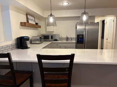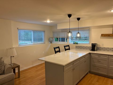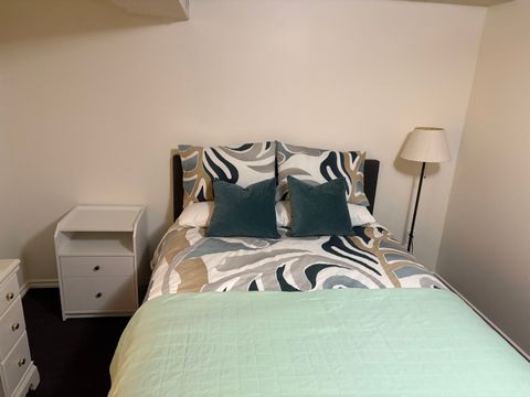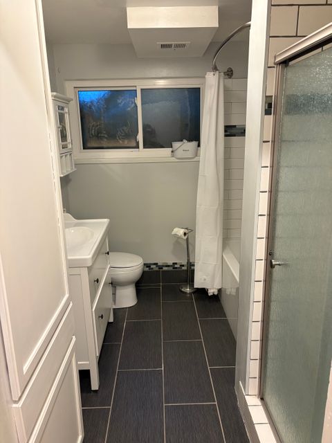 This spacious 900 sq ft private lower-level 1 bedroom / 1 bathroom unit offers comfort, convenience, and privacy in a quiet residential neighborhood. Seeking longer term short-term renters (1 month min). The unit features large windows and standard-height ceilings. The kitchen includes a full-size refrigerator/freezer with water filter, sink, microwave, toaster oven, quartz countertops, and ample cabinet storage perfect for daily cooking and meal prep (note: no range).