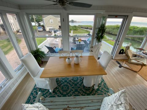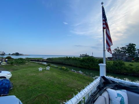 Completely renovated 3 bedroom 2 bath home for rent. Located in a Private Beach Association. New Kitchen, new bathrooms, all new hardwood floors. Air conditioned. The kitchen has all stainless steel appliances, including dishwasher and microwave. Fully stocked with pots and pans, dinner plates, silverware, glassware. Also a washer and dryer, 3 flat screen TV with DVD, cable and wireless internet. This view is spectacular from every room in the house. The master bedroom has a king size bed with a flat screen TV, the second bedroom has a queen size bed with a flat screen TV and the third bedroom has a trundle bed. The back deck is surrounded by water which is perfect for relaxing and watching people kayak in the cove which connects out to L I Sound. Perfect spot to drop your kayak in the water and enjoy the beautiful coastline. For your convenience there is also an out door shower, and a gas grill. This home is beautifully decorated with open space living room and dining area. The interior porch has a table and chairs, a couch which opens to a sofa bed and a view that is magnificent!!!! Branford has some excellent restaurants within a mile. The Stony Creek Brewery, Guacamole Mexican , Lenny's Seafood, Stony Creek Pizza, The Stand and many more. We are located half way between New York and Boston. Either using I-95 or the Shoreline train which is only 2 miles away with free parking. The outlet malls are only a 20 minute drive (Clinton & Westbrook) Take a 45 min ride to Mohegan Sun and Foxwood Casino, and for the kids enjoyment Mystic Seaport and Aquarium is only about 45 min. away Enjoy your time at the shore any time of the year !!