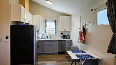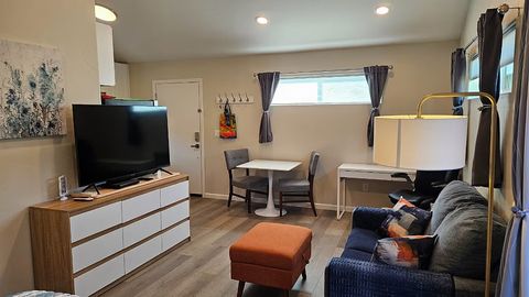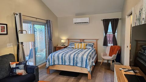 Crafters Guest House is a bright, detached, private studio in an established, safe neighborhood with scenic parks, walking trails, and a nearby dog park. Fully furnished and pet-friendly, its perfect for travel nurses, traveling professionals, or anyone seeking a comfortable, worry-free home away from home. The space comfortably accommodates two adults with a queen bed and includes a convertible couch for an occasional guest. Enjoy a full-size kitchen, private bathroom, full-size washer and dryer, vaulted ceilings, and a private gated keycode entrance for added security. Conveniently located near Trader Joes, Orange Theory, coffee shops, and the soon-to-open Whole Foods. One additional pet allowed (preferably a dog, no exotic animals). No smoking, vaping, or drugs.