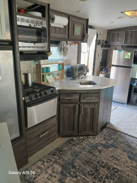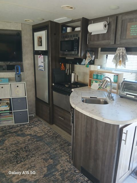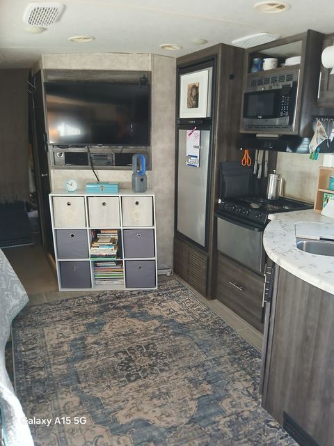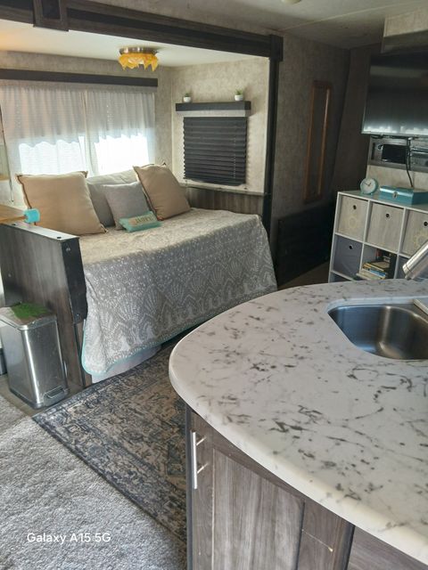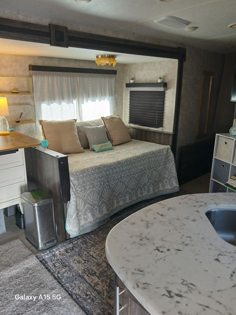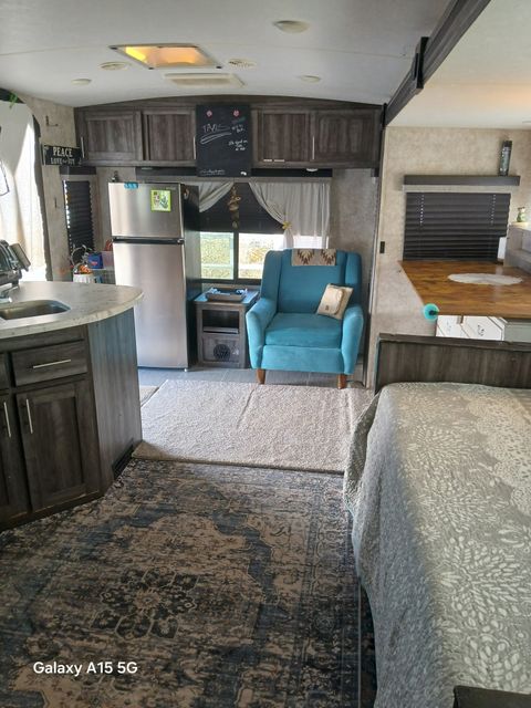 Cozy and comfortable travel trailer available from March15 through October 31, 2026. This is a studio setup (not a 1 bedroom). Twin bed/sofa with pillows and bedding provided. Full kitchen with microwave, propane oven/stove, 2 sinks, refrigerator. Additional oven that bakes, broils, toasts and air frys. Counter for eating and computer work. Full bathroom with sink and shower. 40" tv with Roku. Fenced outside area perfect for a SMALL, QUIET dog. The trailer has a doggy door, although I recommend when you are away to put your dog inside and close the doggy door (predatory birds are in the area). Propane firepit (not suitable for grilling food). My trailer is on an upper level of the rv park and has a very nice view of Truth or Consequences. Water, sewer and electric included in rent. Laundry on property. I will provide two full propane tanks to start you out, but you will need to refill on your own dime (Tractor Supply is right next door to the property) Prefer someone familiar with living in a trailer as you will need to dump the black and grey tanks as necessary. You will not be able to accept mail here, the post office is within walking distance.