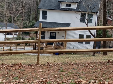 Pet Friendly with Fenced yard newer build 2024 2 story home. 1 primary bedroom on main level with king size bed and full size bathroom. 2 bedroom upstairs with an additional living space and dedicated work space. Enjoy backyard with fire pit or cozy deck with comfortable patio furniture. You'll feel very relaxed in this mountain feel quiet neighborhood while enjoying abundant wildlife. There is also a new 6 mile paved walking and bike trail ( Ecusta Trail) that goes into town. You have best of both worlds with this beautiful mountain home while you are very close to shopping and UNC Pardee Medical services and hospital which is less then 4 miles away. This Home is Available February 20th-June 10th 2026. *Ask about Allowed pets.
