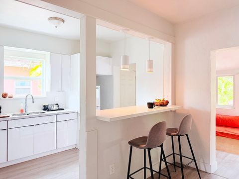 In the heart of Little Haiti, this lush property is surrounded by bars, venues, restaurants and coffee shops, perfect for respectful guests who value design, cleanliness, and a calm shared space with authentic Miami character. Neighboring Little River, Buena Vista, Wynwood and Design District within 10min, and only 20min to the beach and airport. The garden is shared with butterflies, roosters, peacocks, iguanas and geckos as well as fruit trees like papayas, mangos, bananas and soursop.