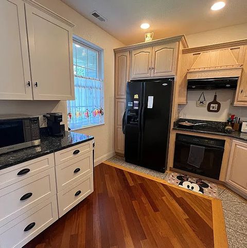 Open space for dining and living in this beautiful inlaid wood flooring. For more pictures check out our listing on zillow by looking for 1600 sq ft 3 bedroom 2 bath escape to serenity in harrisonburg, va for $2500/month.