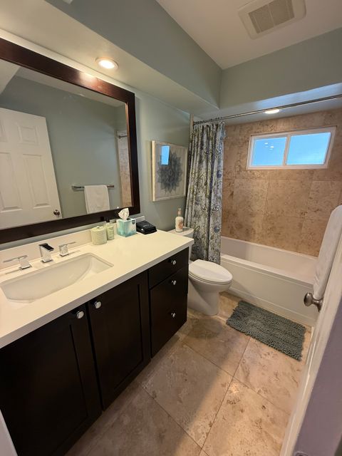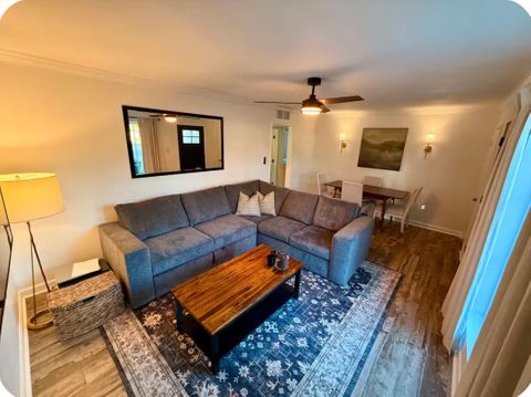 3 bedrooms. Two queen beds, one king. Exceptionally clean. Beautiful turf backyard with salt water pool. Beautiful, safe and quiet neighborhood. Walkable to many restaurants. 2 bikes included. Pool maintenance included. Fully stocked kitchen, laundry and bathroom. All new linens, rugs and beds.