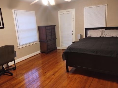 This beautiful newly updated Atlanta home is waiting for you. Home features hardwood floors in bedrooms, high speed WI-FI, dining room, outdoor porch, and plenty of off-street parking. Kitchen comes equipped with stove, microwave, dishwasher, and coffeemaker. Free on-site laundry! Each bedroom features QUEEN size bed, punch code locks, work desk , dresser, and night stand. Conveniently located minutes from the Airport and Downtown Atlanta, this home is perfectly placed near highways, shopping, and public transportation. Bus stop located 100 feet from home. Your new home awaits!