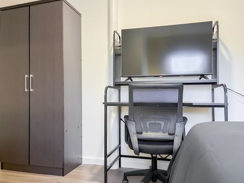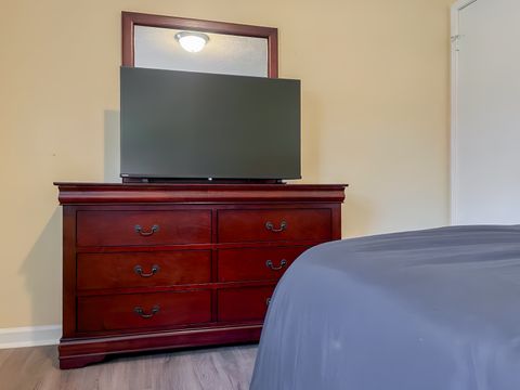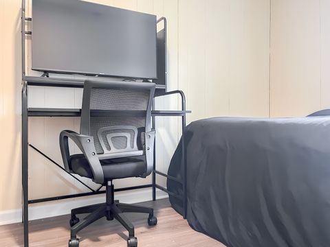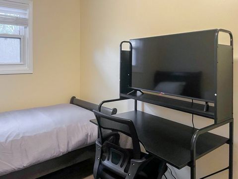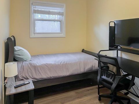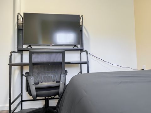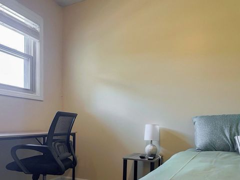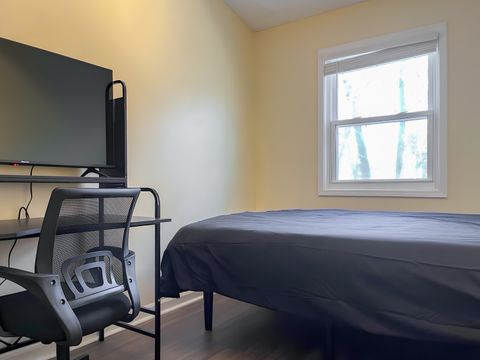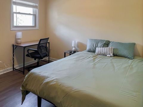 Your new home awaits! This cozy Mableton home is waiting for you. This PadSplit is newly-renovated and comfortable. The rooms have relaxing colors and amenities to make your stay comfortable and soothing. Each room includes a working desk and chair, 43 inch smart TVs, full or queen sized beds, and a nightstand and lamp. Cleaning of the kitchen and bathrooms is done once per week. The kitchen comes equipped with 2 fridges and freezers, a sink, oven, stovetop, microwave, oven/grill/airfryer, a filter coffee machine, and a keurig coffee machine. The house is a 3 minute walk from highways and transit, which means you won’t be far from all Mableton has to offer, while also coming back to a quiet and safe neighborhood.