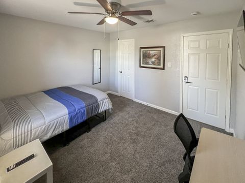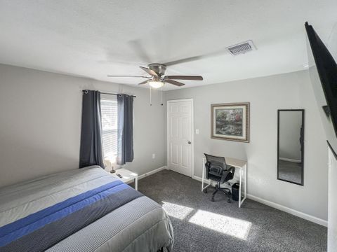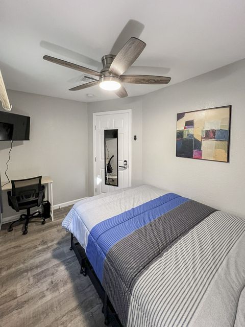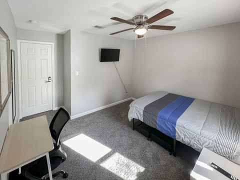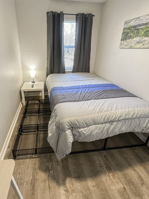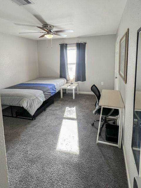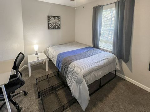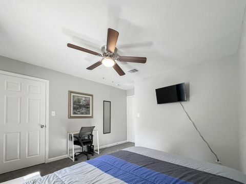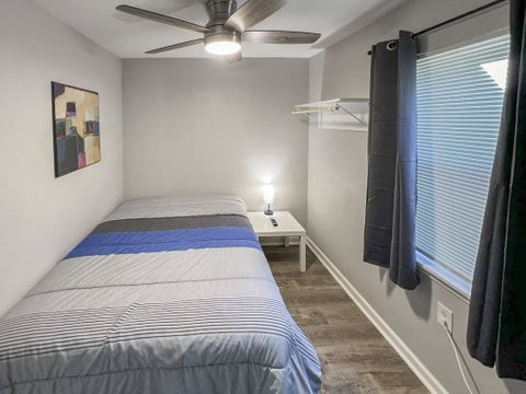 Welcome to your vibrant coliving space! As a Top-Rated Host with a reputation for exceptional customer service, your comfort is our priority. This beautifully upgraded home offers everything you need for a seamless stay. Here's what awaits you: Modern Comforts: Enjoy a fully equipped home with fast Wi-Fi, in-house washer & dryer, upgraded appliances, and a dedicated dining area. Private Oasis: Your cozy room features a plush full bed with under-bed storage, a spacious closet, and an electronic lock for privacy. Work & Relax: Stay productive with a dedicated workspace (foldable desk + rolling chair) and unwind with a smart TV. Blackout curtains ensure restful sleep! Prime Location: Perfectly situated close to shopping, your workplace, and just a short drive to the exciting attractions of Galveston.