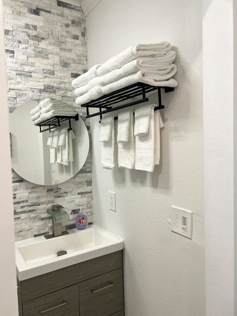 This cozy tiny container home is located in a quiet RV park, decorated with modern touches while providing the basic necessities. It has a porch, picnic table and BBQ and a nice view of the grassey area. The kitchen is equipped with a fridge, sink, microwave, stovetop, as well as basic cookware. Each bedroom has a dedicated TV and mini-split for heat/cooling. Laundry Facility is on property. The surrounding location is close to public transit, CARTS / Carts Now is just down the street. Location is everything and this home is located 1/2 mile from Hwy 71 and is only 6 miles from I-130. 9-miles from Tesla/SpaceX, Boring Company and Austin Airport.