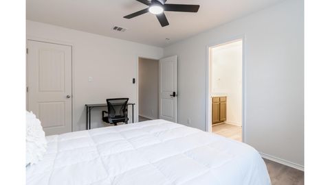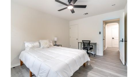 Welcome to the largest and most upgraded home in the peaceful Blue Rock Springs community — a professionally managed 8-bedroom residence with high-end finishes, fully furnished rooms, and all-inclusive utilities. Enjoy the comfort and convenience of: Private bedroom with secure keypad entry Spacious common areas for relaxing or working from home High-speed Wi-Fi for streaming, remote work, and video calls Fully equipped kitchen with stainless appliances and plenty of cabinet space In-home washer & dryer (no laundromats!) Driveway + street parking available Furnished room with bed, nightstand, and dresser (move-in ready) Bi-weekly common area cleaning included This quiet, safe neighborhood is just: 10 mins to H-E-B, Walmart, and major shopping 15 mins to downtown San Antonio Quick access to I-410 and Hwy 87 All utilities included (electricity, water, internet, trash) No move-in fee for qualifying applicants Enhanced screening available