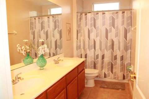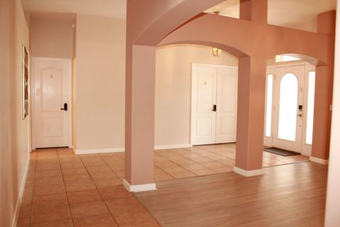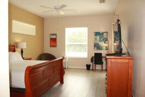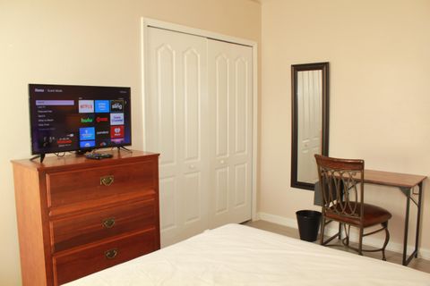 Only one person is permitted per room. A spacious, single-story home, boasting 2648 sq ft of comfort in Highlands Reserve Golf Course. All Brand New Appliances. Brand New Washer and Dryer The property is close to Restaurants, Fast foods, Groceries, Pharmacies, Hospitals, Home improvement & more, Taking a walk around the neighborhood is also enjoyable. Perfect and spacious for 5 members only . The master room ( room #1) has its own private bathroom with Walk-in Closet. It has its private door leading to the pool. Only 2 members will share a bathroom. Each member is responsible for providing their own bed linens. Each room is equipped with a Smart TV with Roku, and we provide complimentary Wi-Fi, computer table and chair, and full length mirror, ceiling fan, dresser & night stand. Each room features vinyl flooring for hassle-free cleaning. Kitchen has stainless steel appliances and stocked with cookware, utensils & dining essentials. Enjoy the swimming pool with a conservation view One car per member only. You can park on the driveway and street directly in front of the house. Very convenient parking.