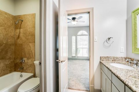 Enjoy living in a high-quality House. This spacious home is decorated with modern touches while providing the basic necessities. All that’s missing is you! High ceilings, Nature and relaxing outdoors, a beautiful creek in the backyard, plenty of parking, 5 mins away from everywhere! Peace of mind...included! This is one of the safest neighborhood in the DFW area, so quiet but close enough to the highway to make it anywhere quickly! This is the house you want to be in, so comfortable, beautiful common areas. A rare house in padsplit. Great service and amenities: - High speed internet (1 Gig), perfect for work from home, gaming or streaming - Large front and backyard with firepit and gazebo - Large driveway with a lot of room for parking - Pest control and maintenance contracts into place (no unpleasant surprises here!) - High-end Kitchen, with marble countertops, induction stove, microwave, oven , garbage disposal and dishwasher. All PREMIUM. - Dedicated pantry and refrigerator space, so there are no issues between padmates - All rooms have walk-in or larger than standard closets. - Master room has double showers and jacuzzi tub. You won't be happier than here!