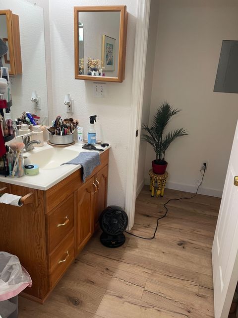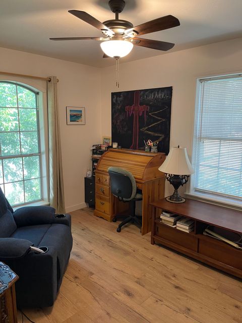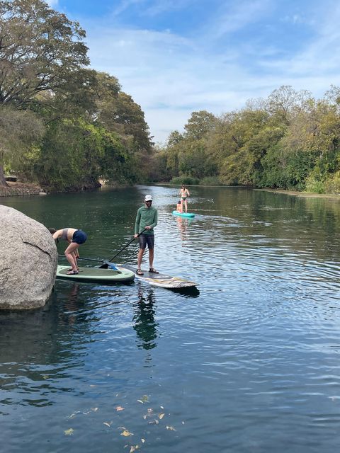 Upstairs living on the San Marcos River. Peaceful view from the back porch. Walking distance from Rio Vista Park, and less than a mile from multiple other parks along the river. Large window overlooks the yard from the dining area. This open floor-plan home has room to relax, and offers a newly built pathway. The large kitchen comes equipped with 3 fridges, an oven, stovetop, microwave, and a sink with a garbage disposal. The neighborhood is centrally located near highways, and bike lanes. A 15 minute walk gets you to most things San Marcos has to offer. Hospitals and Student healthcare as well as Texas State University are within 2 miles of the house. Five minute walk to the River. Ten minute walk to the Activity Center and Library or downtown and grocery shopping.