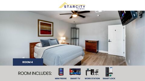 Each room features a Smart TV, a Smart Lock System, a Mini Fridge and new Furniture! But there's more! This spacious San Antonio home is completely renovated. You will enjoy the new kitchen and appliances and the sleek bathroom designs. The kitchen comes equipped with a fridge, sink, oven, stovetop, as well as upgraded appliances. The neighborhood is close to public transit, which means you won’t be far from all San Antonio has to offer! Note: We require all members to have an active renter’s insurance policy to approve your booking request. If you don’t have one, you can set up a policy through us for $16/month (excluding transaction fees). Please only book if you understand and agree to this requirement.