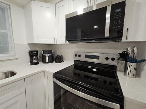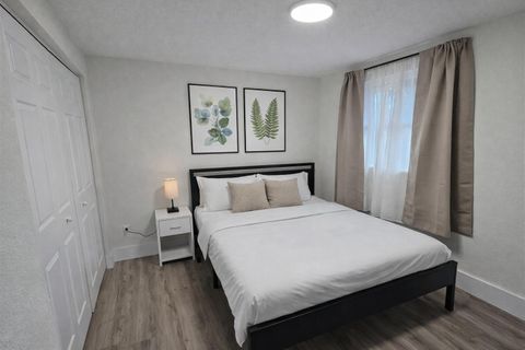 Your new home awaits! This high-quality, newly renovated, and spacious Tampa home is move-in ready and thoughtfully designed for comfortable everyday living. The kitchen features brand-new, upgraded appliances, including a refrigerator, oven, stovetop, microwave, dishwasher, and sink—perfect for cooking at home. It comes fully equipped with flatware, silverware, cookware, and convenient appliances such as a toaster, air fryer, and coffeemaker. Stay connected with excellent 1GB high-speed Wi-Fi, ideal for remote work, streaming, and video calls. For added peace of mind, the property is equipped with exterior security cameras and motion-activated lighting throughout the outdoor areas. The home is conveniently located near grocery stores (WalMart Neighborhood Market, Publix, Wawa), with a local bodega just two blocks away for quick and easy errands. For commuters and city explorers, the home sits directly at the HART Route 16 bus stop (Mulberry St & 14th St, off Waters Ave), offering easy East–West travel and fast connections to North–South routes along Nebraska Ave—perfect for members who value flexibility and accessibility across Tampa. Each room is thoughtfully furnished with a desk and desk chair, blackout curtains for restful sleep, and nightstand(s) with lamp(s) that include two standard outlets, one USB port, and one USB-C port—making it easy to work, relax, and charge devices comfortably.