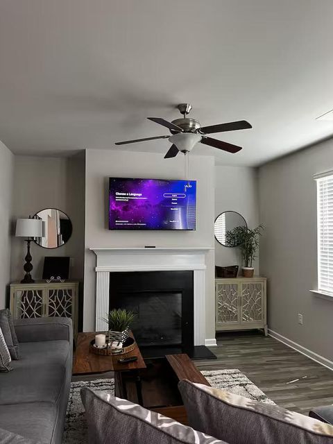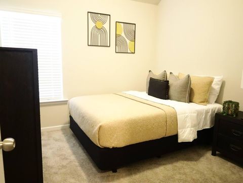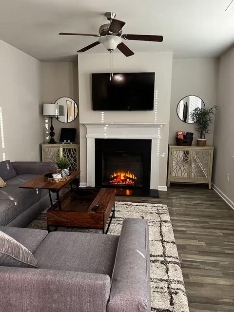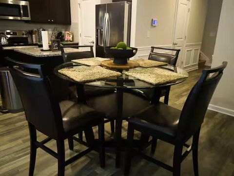 Welcome to this spacious home that offer a comfortable and inviting living space to enjoy and just 12 minutes from the airport and 13 miles to downtown Atlanta & popular sites and attractions. As you enter, you'll find an open-plan living space with a comfy sofa and a Smart TV, perfect for relaxing and unwinding after a day of exploring. Adjacent to the living room is a dining table for enjoying meals at home together. Fully equipped kitchen for preparing meals at home. As soon as you enter the upscale house, you're welcomed by a cozy open-plan living area, designed and furnished with numerous contemporary amenities that span throughout the entire interior of this modern home. The fully equipped kitchen and the adjacent dining area open onto the attractive living room with the intimate fireplace, setting the stage for many memorable family evenings. Sun shines through large windows and doors, accenting the elegant laminate floors and making the space cozy and warm. But the best is yet to come – Once you are ready to rest and relax, please make your way to the upper floor, where you’ll discover comfortable bedrooms designed to offer all the rest you need after an exciting day of Atlanta adventures.