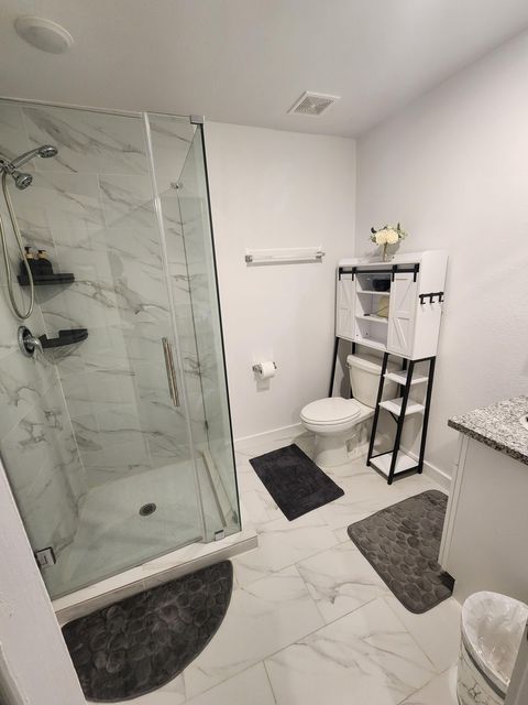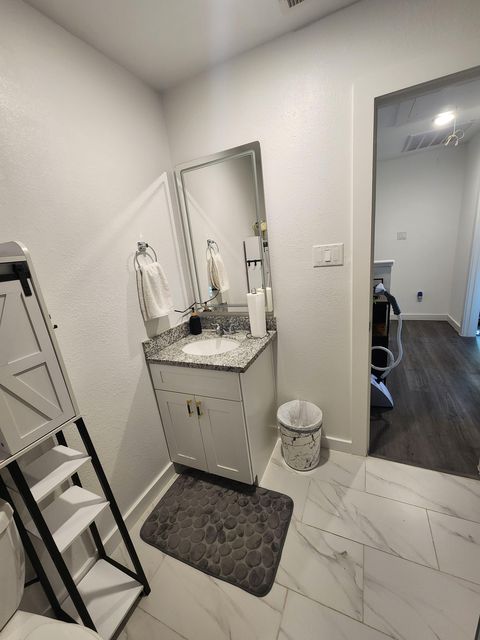 Elegant, PRIVATE, furnished bedroom for rent (all utilities included, pest control, in-unit washer/dryer, shaded backyard sitting area, etc). Only 1 roommate. Comes with own private bathroom, queen-sized bed, sitting chair, room fan with remote control, colorful LED lighting in the bedroom &bathroom, an in-room lounge/work area with tv, table, huge closet, and enhanced security. Only bedroom located on the 1st floor, next to the kitchen &living room. Features amenities such as code-controlled entry door and bedroom door, outside video surveillance & security system, access to home gym equipment, free street parking on a dead-end street, tea/coffee, & craft circle ice! ~ALL occupants will be required to sign the host's Voluntary Housing Licensee Agreement~ • THE PROPERTY: 2-story townhouse, newly constructed. Brand new appliances – stainless steel microwave, oven, refrigerator with built-in water cannister and ice, and washer/dryer. It also has a large, enclosed backyard with a tall privacy-fence, a private patio, private driveway, ample free street parking, and security surveillance. • THE NEIGHBORHOOD: It is a very peaceful, calm place to call home or vacation. The neighborhood is quiet and quaint, centrally located, but still tucked away from the rest of the city. It is in a small quaint neighborhood on a dead-end street with the surrounding streets also being dead-end roads, so there's never any random through-traffic or strangers in the neighborhood. There is only 1 neighbor in the immediate vicinity located to the left of the property, but no one lives across the street. • THE LOCATION: This home is centrally located right off the northeast 610 Houston Beltway highway. It is also centrally located between the 6 major Houston highways (610, 59/69, 45, 10, etc.). 1 exit down from the new Harris Health hospital. 10 min drive to the Houston Medical Center, Houston Heights, Montrose, and Downtown Houston. It is just a 15-20 min drive to both airports.