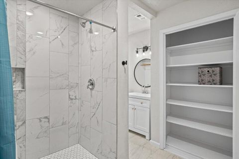 Welcome to a fully remodeled, move-in ready home in San Antonio with professional management and rooms to fit every budget. Choose the room that works for you: Shared bath rooms starting at $172/week (promo) — full bed, fully furnished Private bath rooms starting at $231/week (promo) — queen bed, your own bathroom, maximum privacy All rooms include electronic keyless entry, reach-in closet, central AC, and a dedicated workspace. The home has 5 bedrooms and 3 full bathrooms — one of the best bathroom ratios you'll find on PadSplit. No waiting, no crowding. You also get: In-home washer/dryer (no laundromat trips) Spacious backyard Upgraded kitchen with modern appliances High-speed WiFi included Covered driveway + street parking available Professional cleaning for shared spaces The Neighborhood 12107 El Sendero sits in the Uptown Central area of San Antonio — a well-connected, residential neighborhood that's easy to get around without a car. Getting around is easy: Bus stops at Thousand Oaks & El Sendero — 8 min walk Walmart — under 1 mile away Restaurants & shops along Thousand Oaks — 5 min drive Northeast Baptist Hospital — 10 min drive Easy access to Loop 410 and I-35 Whether you commute by bus or car, this location keeps your options open. This is a quiet, professional household — ideal for working adults who value a clean, well-maintained living environment. Quiet hours 10 PM–9 AM. No smoking. No pets (service animals welcome). Flexible weekly payments. 10% off your first 6 weeks. Brand-new remodel. Professional management. Reserve your room today.