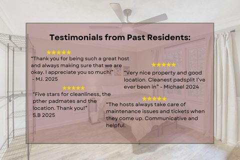 Your Private Space is Safe, Clean and Secure: Every bedroom is fully furnished with a Smart TV, dedicated workspace, dresser, and built-in closet or clothing rack. A Smart Lock keeps your space secure — no lockouts, ever. Just bring your linens and you're home. A Home To Be Proud Of: Common areas are professionally cleaned twice a month, and we provide household essentials. Labeled fridge and cabinet spaces keep things conflict-free. Every member is expected to clean up after themselves. A Community That Actually Works: We set clear expectations and enforce them. Members here are respectful, no-drama, and considerate of shared spaces. Responsive Management: Questions or concerns? We typically respond within minutes during business hours. Maintenance is handled quickly, and we genuinely listen to your feedback. We look forward to welcoming you to Meadowchase!