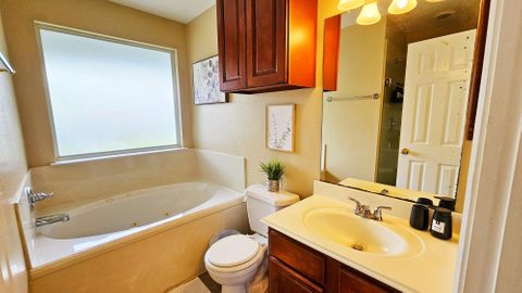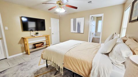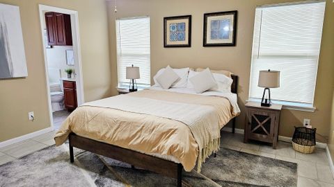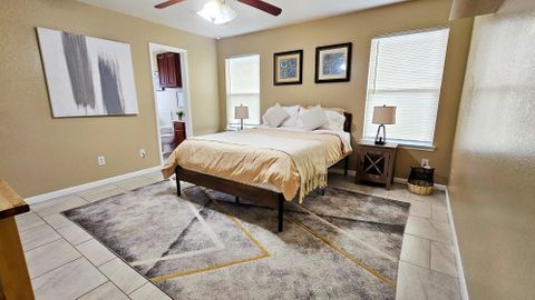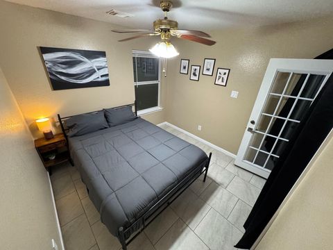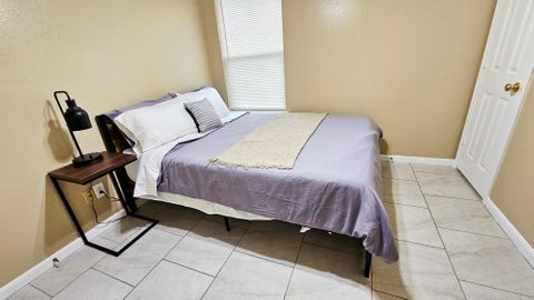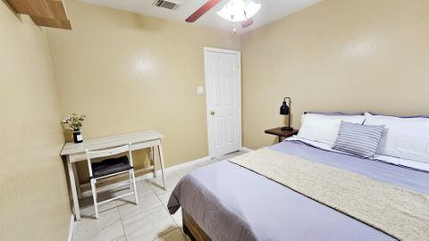 Fully furnished corporate rental home, modernly decorated and includes all the amenities you love. Centrally located in a peaceful neighborhood 2 minutes from the 288 highway in South Houston. The room features locks on each door with key access. The front door is accessible with a key-code entry with shared common spaces including the bathroom, living room, kitchen and dining areas. All of our homes feature washer and dryers, refrigerator, full cooking appliances and cooking amenities and are professionally managed. Private room in 4 bedroom home. Fully furnished with shared living spaces and all utilities are included. Month to month rental.