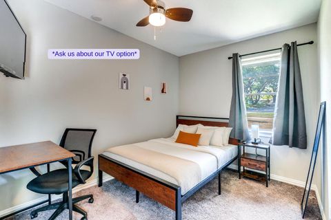 5-Star Rated HOME with professional management Welcome to your new South Dallas home! A newly renovated, fully furnished space that’s comfortable, safe, quiet, clean, and modern — all at a great price, ready for you to move right in. Why You’ll Love Living Here: Fully furnished rooms with essentials (bed, desk, chair, TV, closet) Spacious kitchen with granite counters & appliances Plenty of parking + tidy shared spaces Relaxing back porch Electronic locks & security cameras for peace of mind Included Services: Monthly cleaning of shared spaces Landscaping & pest control Free washer & dryer High-speed internet Location Highlights: 4 min walk to bus stops Quick access to Interstate 35E 11 min to Downtown Dallas, 8 min to Dallas Zoo, 5 min to UNT, 4 min to Walmart, and more Secure your spot today and start enjoying hassle-free living! Room Amenity TV Upgrades Available for a small fee We require renters insurance to approve bookings. No policy? Get one through us for $16/mo (plus fees) before booking.