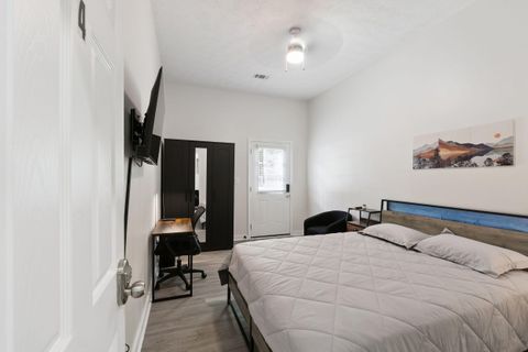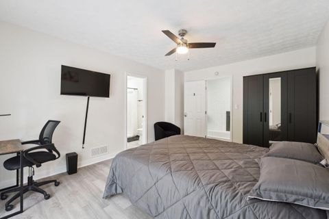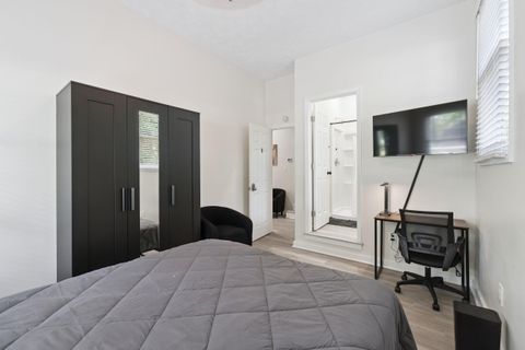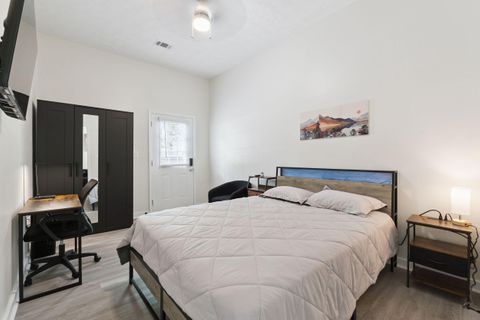 This spacious PadSplit combines modern comfort with thoughtful design. Brand new house with bright, open layout perfect for unwinding after a long day. The fully stocked kitchen features new appliances, abundant cabinet space, and two refrigerators to make meal prep a breeze. The adjoining dining/ living room, creates a warm, social space to dine, relax or connect with housemates. With 2 laundry rooms, 7 spacious bedrooms all with TVs, and 7 beautifully updated bathrooms, everyone has room to breathe and lots of privacy. Step outside to a large backyard, or gather on the back deck with patio seating and string lights for cozy evenings under the stars. This home is built for convenience, offering: Fast Wi-Fi throughout Two laundry rooms for hassle-free wash days A formal dining/living area with TV Three exterior doors for easy access Five dedicated parking spaces plus street parking Tucked in a peaceful neighborhood, yet close to shopping, schools, and major highways!
