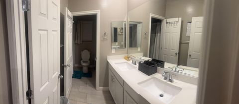 Your new home awaits! This spacious North Las Vegas home is waiting for you. This PadSplit is within a gated community that includes a local pool, garage parking, spacious rooms and a private bathroom. There are several parks nearby, plus great shopping and dining and just minutes away from Hwy 215/15 freeways. In addition to these great amenities are some nearby entertainment like casinos, movie theater, trails etc. Enjoy a shared fully-equipped open area kitchen, marble countertops, all working appliances including a fridge, oven, microwave and a walk in pantry, plus dishwasher. Private bathroom, spacious laundry room and quite neighborhood. **Please note i do have a friendly and very playful dog on the premises, she is a puppy, that is primarily kept in the backyard.