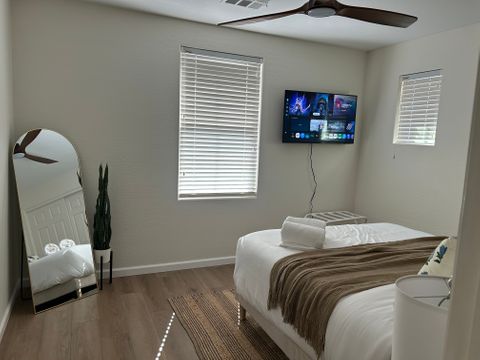 Located in the desirable Seville neighborhood of Gilbert, this fully furnished home offers true turnkey living with TVs in every bedroom for added comfort and convenience. The inviting outdoor space features a private patio with a firepit, perfect for relaxing or entertaining on cool desert evenings. Mature citrus trees add charm and shade to the backyard, creating a peaceful retreat. Thoughtfully furnished inside and out, this home blends comfort, functionality, and the relaxed lifestyle Seville is known for.