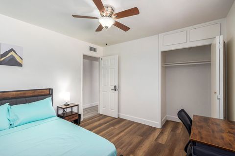 This is the house that HAS IT ALL! Every room is fully furnished with a BRAND NEW bed & nightstand (frame & nightstand have extra electrical outlets & USB outlets included & two drawers for clothes), memory foam mattres and office desk & chair. The kitchen is FULLY FURNISHED & INCLUDES an air fryer, Keurig coffee machine, toaster, microwave, plus all the utensils, pots, pans, cups, bowls & everything you could ever need. This house even has a small common area space, which also boasts the fastest & best WIFI available. The highly responsive management team takes pride in keeping the property CLEAN, QUIET & SAFE and wants it's members to always feel at home. This property is in a quiet neighborhood walking distance to GCU & plenty of public transportation. Don't miss out on this opportunity to live in a beautiful property in a prime location. Check out the 3D tour & see for yourself!