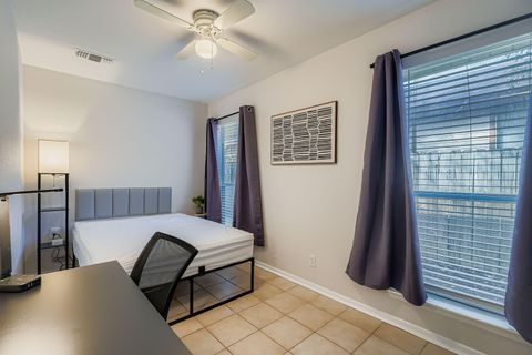 This property sits on quiet Matthews Lane, perfectly located near everything you need for easy, affordable living. Just a short walk or quick bike ride takes you to Sprouts, CVS, and plenty of local favorites along Menchaca and William Cannon. You’ll find restaurants, bars, coffee shops, and retail options all nearby, along with major bus routes that connect you to downtown and other parts of the city without the need for a car. The home features tile flooring throughout, a communal dining room, and an enclosed backyard for relaxing after a long day. The laundry area is conveniently located on-site for all housemates to use. The property is a duplex, and each side has 3 rooms, so you'll be living with only 2 other people. Rooms are thoughtfully designed for comfort and privacy, with plenty of natural light. Room 3 includes a private entrance, private bath, direct access to laundry facilities, and a truly spacious walk-in closet. This is the ideal South Austin PadSplit for anyone who wants a peaceful, clean, and well-connected place to live—close to grocery stores, dining, and public transportation, yet tucked away in a quiet residential area.