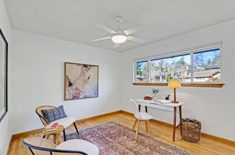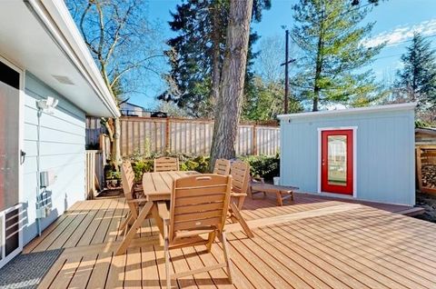 MULTI-FAMILY HOME 2 Kitchens, 2 Laundry, 2 Entrances Perched above Hillsdale Village in the Bridlemile area of SW Portland, this home offers easy access to shops, parks, trails, and transit. This sunny, thoughtfully-designed home supports shared living with simple elegance across two unfurnished living spaces. Separate entrances and an interior stairway connecting the levels create a natural balance of privacy and connection, with easy flow to outdoor garden, deck, and office shed. A Home for Living with Generations — SW Portland, Hillsdale-Bridlemile Neighborhood This home is well suited to living with generations or extended / blended family members, offering a balance of connection, independence, and everyday ease. A place to experience “the good old days” together, now. The layout supports independent & shared living across households, with spaces that allow for both time together and time apart—moving easily between levels, sharing meals, checking in with one another, and settling into the natural rhythm of daily life. The home includes separate entrances and privacy doors between, along with interior stairs that make it easy to stay connected. Outdoor spaces, including the deck, terraced garden and fruit trees offer natural places to gather. We have created an ideal space for an extended or blended family in our home because we personally have gained so much benefit through this kind of family living arrangement; we know the value of sharing life together through all its joys and changes. We are grateful to offer this opportunity to others in search of co-living. About the Home... Perched above Hillsdale on the southwest slopes of Council Crest, this classic 1950s home reflects the quality and craftsmanship of its era, with thoughtful updates throughout. Freshly refinished oak hardwood floors and an original Roman brick fireplaces on both levels anchor the main living spaces. Large picture windows bring in light, sky, and greenery, creating bright, comfortable rooms. The newly remodeled upper kitchen offers an easy flow to the deck and garden. Updated bathrooms include a newly added micro-bath for added flexibility. The daylight walk-out basement includes a family room, bedroom, bathroom, and second kitchen—creating a flexible, semi-independent living space within the home. Additional features include a two-car garage with workshop area, an insulated shed/office, and an electric car charger in the driveway. Located less than a mile from Bridlemile Elementary and Albert Kelly Park. Nestled above Hillsdale Village, five minutes from charming Multnomah Village; easy access to shops, farmer’s markets, trails, library, and public transit. If this kind of home fits your vision, we’d love to hear from you! Available April 1, 2026 •flexible move-in timing $4,995/month for the full home Available as two separate units if desired: $3750 for 3 bd/2ba upper level $1750 for 1br/1ba lower level Rental insurance required MULTI-LEVEL HOME FEATURES Each floor has its own private entrance, full kitchen, designated laundry & full bathroom. Residents of either floor may wish to access the following features: Terraced Organic Garden Beds plus many fruit trees, blueberry bushes etc. Bonus She-Shed or Office - insulated, with electricity and wall heater - 11’x 11’ Garage for two cars, with easy ‘roll-in’ access to ground floor Workshop room adjacent to garage for art and building projects or storage High-speed EV car charger in driveway UPPER FLOOR -Large windows throughout -New Kitchen with gas range & hood - 17'x11' -3 Bedrooms - (13'x12' -14’x11’ - 12’x11’) -2 Bathrooms (1 en suite, 1 hall bath) -Spacious living & dining room - 31’x 15’ -Wood-burning fireplace -Refinished oak floors throughout -New double-glazed windows (energy efficient) GROUND FLOOR Daylight basement with private street entry, or garage entry ADA accessible through the garage Spacious Bedroom - 13’ x10’ Family Room w/ wood-burning fireplace - 15.5’ x 20.4’ New Kitchen & Breakfast nook - 17’ x 12’ New Laundry room - 9.2’ x 6.8’ New Bathroom - 3.6 x 10.2’